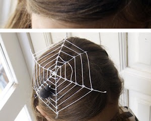 Over at the blog El hada de papel there is a darling spider web hair accessory idea along with the explination on how easy it is to make one perfect for Halloween. Related Posts:How to make a recycled trash bag spider web Halloween…How to make a spider web poncho